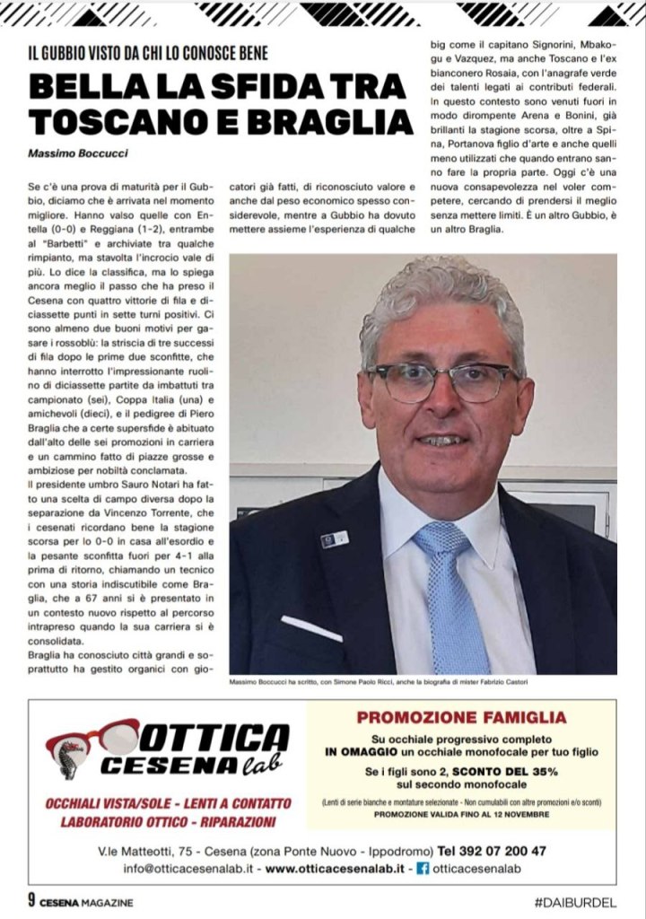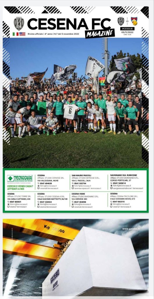 Articolo su Cesena FC Magazine del prossimo 5 novembre 2022 per il big-match Cesena-Gubbio del Girone B di Serie C Postato il 4 novembre 20224 novembre 2022 di Massimo Boccucci Condividi: Condividi su X (Si apre in una nuova finestra) X Condividi su Facebook (Si apre in una nuova finestra) Facebook Mi piace Caricamento... Correlati