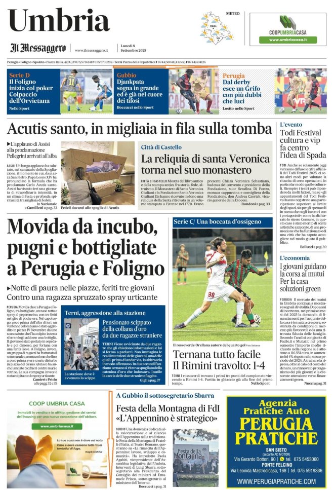 Il Messaggero Umbria 8 settembre 2025
