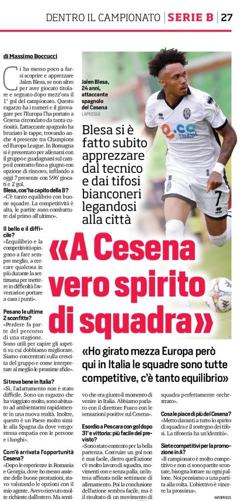 Intervista esclusiva con Jalen Blesa, attaccante spagnolo del Cesena