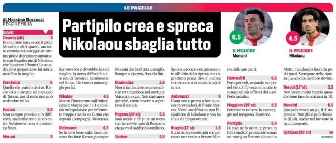 Contrasta e prova a fare qualcosa trovandosi di fronte Marras. Viene sacrificato dopo l’espulsione di Nikolaou e non ha nulla da rimproverarsi.