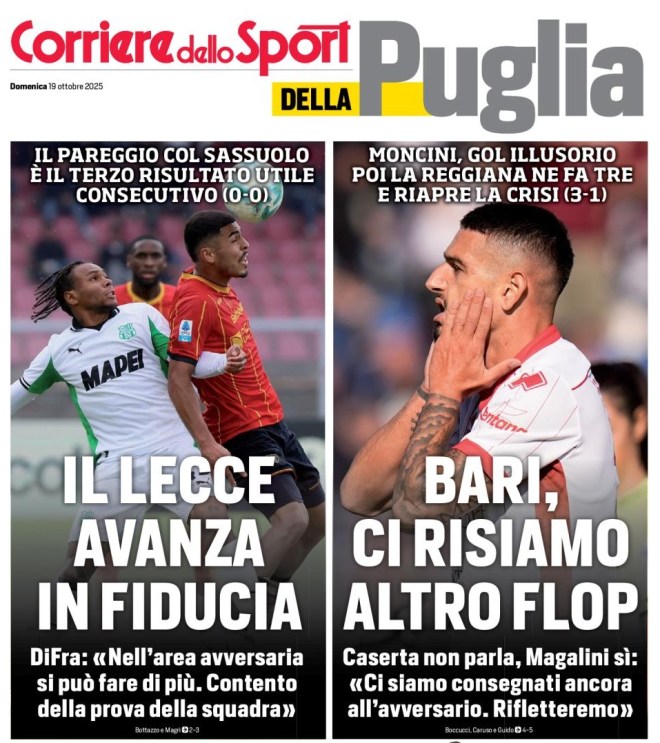Corriere dello Sport-Stadio edizione Puglia 19 ottobre 2025 Postato il 19 ottobre 2025 di Massimo Boccucci Condividi: Condividi su X (Si apre in una nuova finestra) X Condividi su Facebook (Si apre in una nuova finestra) Facebook Mi piace Caricamento... Correlati