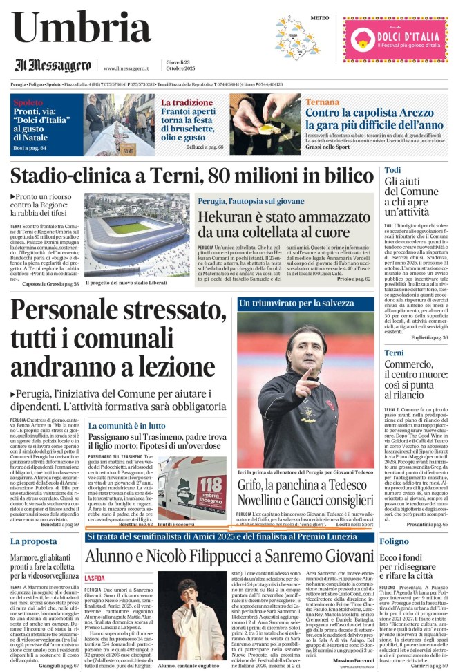 Il Messaggero Umbria 23 ottobre 2025 Postato il 23 ottobre 2025 di Massimo Boccucci Condividi: Condividi su X (Si apre in una nuova finestra) X Condividi su Facebook (Si apre in una nuova finestra) Facebook Mi piace Caricamento... Correlati