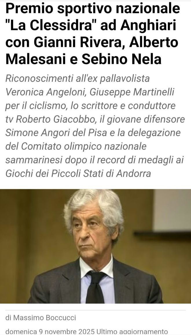 Tempo, volontà, capacità e successo sono la base del Premio sportivo nazionale “La Clessidra”, giunto alla sedicesima edizione e quest’anno con al centro la tematica «Il fattore umano e il rapporto tra sport e intelligenza artificiale», che si terrà martedì 11 novembre, alle ore 18.30, al Teatro Comunale dei Ricomposti di Anghiari, in provincia di Arezzo. Ci saranno grandi protagonisti dello sport, della cultura e del giornalismo per una serata dedicata alla riflessione sul valore che esalta talento, emozione e impronta umana in un’epoca sempre più segnata dall’evoluzione tecnologica e dai linguaggi digitali.