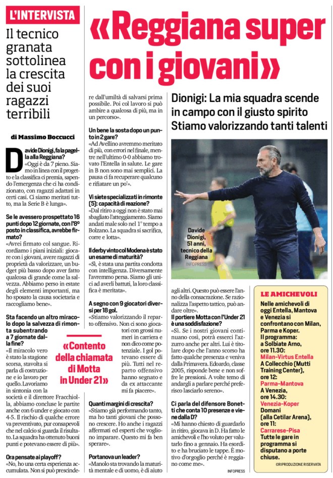 «Sì. Se i nostri giovani continuano così, potrà esserci l’azzurro anche per altri. Lui è titolare dopo che l’anno scorso ha fatto qualche presenza e veniva dalla Primavera. Edoardo, classe 2005, risponde bene e non soffre le pressioni. A volte temo di andargli a parlare perché preferisco lasciarlo sereno».