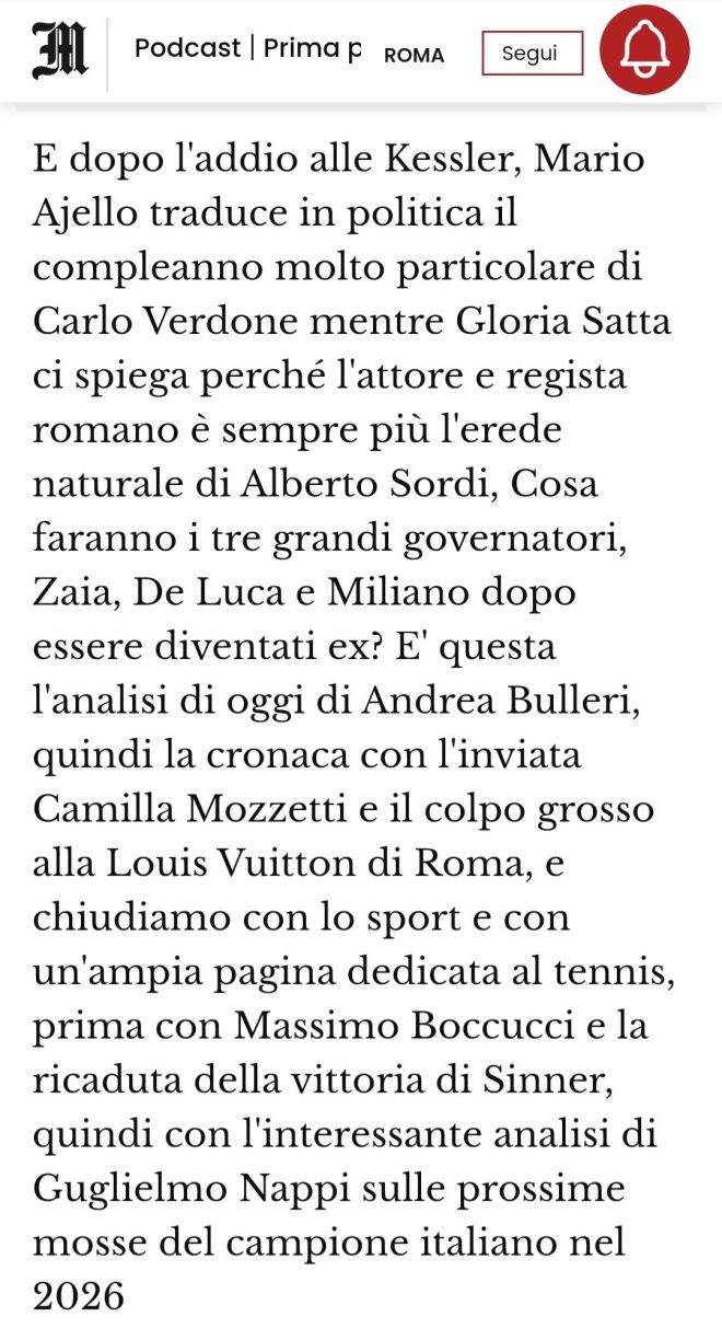 Su Raidue l’evento di Torino, dalle 18.15 alle 20.29, ha registrato 5 milioni e mezzo di spettatori, con il 29 per cento di share. In pay tv il match è stato trasmesso da Sky, titolare dei diritti tv integrali della manifestazione, con un altro milione e mezzo per il 7,6 per cento. Entrambi i dati sono in total audience, cioè comprendono la visione dei contenuti da pc, smartphone e tablet. Va ricordato, infatti, che Auditel ha introdotto a fine 2024 un nuovo metodo di rilevamento, in linea con le mutate abitudini dei consumatori. Sinner-Alcaraz ha fatto meglio della finale di due anni fa considerando solo i cosiddetti big screen: 6.789.000 contro 6.686.000. Con la total audience ha preso il largo visti i 7.008.000 spettatori.