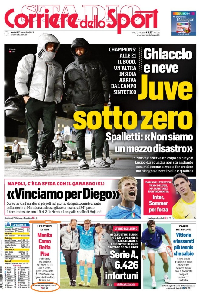 Corriere dello Sport-Stadio 25 novembre 2025 Postato il 25 novembre 2025 di Massimo Boccucci Prima pagina Condividi: Condividi su X (Si apre in una nuova finestra) X Condividi su Facebook (Si apre in una nuova finestra) Facebook Mi piace Caricamento... Correlati