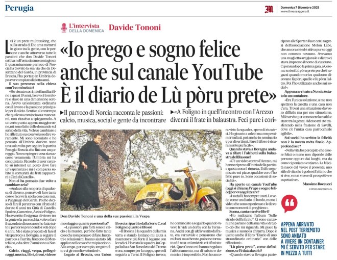 «Il Brescia è la squadra della mia terra e stando lontano mi aiuta a mantenere più forte il legame con le radici. Ho visto la squadra in Coppa Italia a San Benedetto del Tronto e ora, sempre per la coppa, spero di seguirla a Terni. Il Foligno, invece, ho cominciato a seguirlo quando vivevo lì: vidi un derby con la Ternana. Andai con gli ultrà vestito da frate, era carnevale e pensarono che mi fossi mascherato, poi sono tornato ed è nata un’amicizia coi tifosi storici. Quest’anno mi hanno regalato l’abbonamento, ma di sabato e domenica è impossibile. Non ho ancora visto la squadra, spero di riuscirci. Ho giocato a calcio ma con pessimi risultati, poi anche in seminario e per divertirmi. Fare il tifoso è sicuramente più facile».