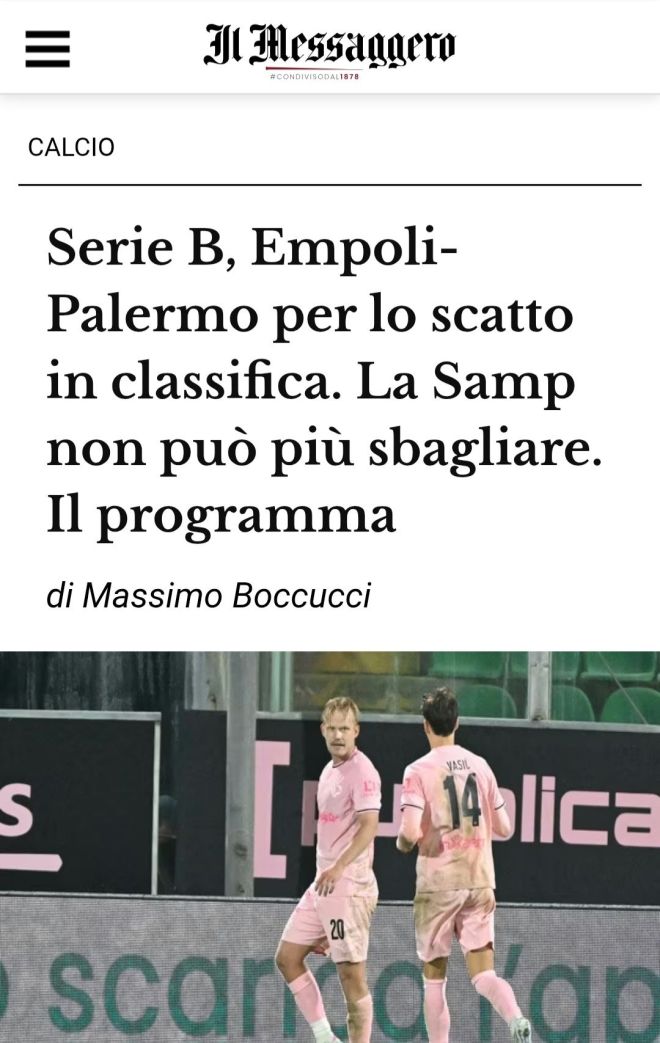 Due partite aprono la 15ª giornata in Serie B spalmata su due giorni tra oggi (domenica 7 dicembre) e domani. Empoli e Palermo cercano al Castellani il salto di qualità, con Alessio Dionisi reduce da 3 vittorie consecutive. Ritrova la squadra che ha allenato la stagione scorsa con la quale avrebbe voluto la seconda promozione in Serie A dopo quella conquistata proprio con l’Empoli. I rosanero di Pippo Inzaghi hanno vinto 2 sole partite negli ultimi 7 turni con 3 sconfitte. A seguire sfida delicata a Marassi tra la Sampdoria che, dopo il derby perso a La Spezia e con 3 ko in 4 gare, non può sbagliare contro la Carrarese, la quale ha ottenuto appena 2 punti nelle ultime 5 gare.
