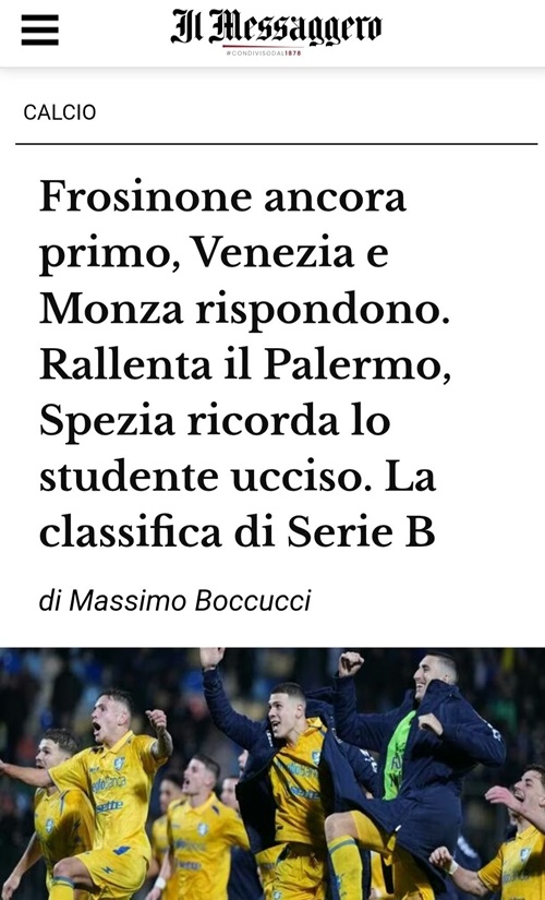 Non si sblocca la sfida tra Modena e Palermo: la formazione di Pippo Inzaghi trova il gol del vantaggio nella ripresa con l’ex Palumbo, ma l’arbitro annulla dopo aver rivisto l’azione al Var. Un minuto di silenzio per Abanoub Youssef al Picco prima della partita Spezia-Avellino, con una fotografia in bianco e nero del diciottenne proiettata sullo schermo dello stadio, sopra la gradinata, come omaggio che il club ligure ha riservato allo studente dell’istituto professionale Einaudi-Chiodo ucciso il 16 gennaio scorso durante la ricreazione con una coltellata. Poi, il gol di Artistico che al 26’ ha piegato gli irpini tornando a sperare nella salvezza diretta.