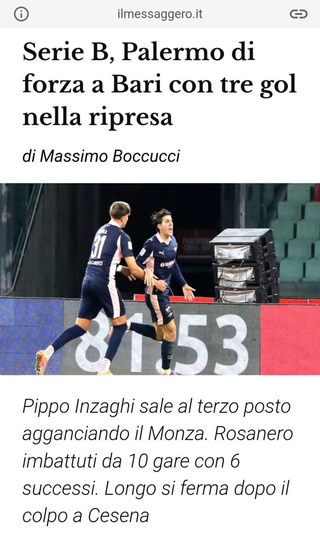 Ha battuto un colpo rumoroso il Palermo stasera (venerdì 30 gennaio) nell’anticipo della 22ª giornata di Serie B al San Nicola contro il Bari che resta inguaiatissimo in classifica. I siciliani hanno superato 3-0 i pugliesi e agganciato il Monza al 3° posto, infilando il 10° risultato utile consecutivo con 6 vittorie. I pugliesi, che hanno vinto solo una delle ultime 11 sfide coi rosanero nei cadetti, frenano dopo il colpo a Cesena nell’esordio di Moreno Longo in panchina, davanti a Pippo Inzaghi che in trasferta ottiene il successo dopo 3 pareggi esterni consecutivi. Si confermano 2 fattori: il Palermo è la squadra che ha preso meno gol in campionato (14) e il Bari quella che ha segnato meno (18, come la Virtus Entella).