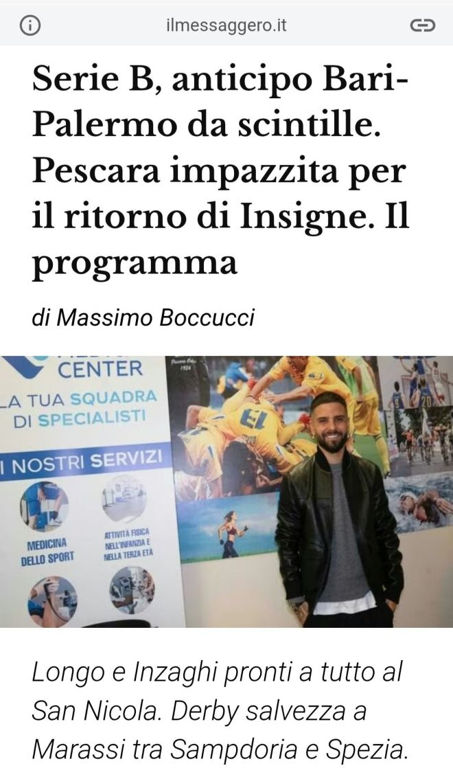A Pescara, dov’è atteso il Mantova per uno scontro salvezza da brividi, sono tutti pazzi per il ritorno, a distanza di 14 anni, di Lorenzo Insigne. «Saluto tutti i tifosi – ha detto -, felice di essere tornato. Speriamo di centrare la salvezza. La ciliegina per venire qui l’ha messa Marco Verratti. In questa città ho vissuto un anno bellissimo. Zeman sempre nel mio cuore. Lo chiamerò. Immobile? Con Ciro mi sento spesso. Non devo fare io da sponsor. Saprà lui cosa fare».