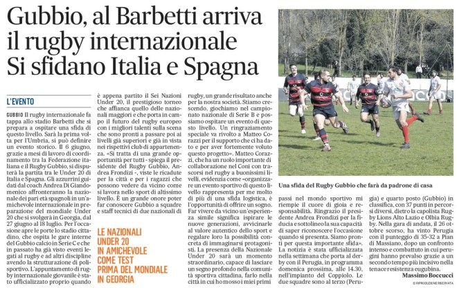 GUBBIO Il rugby internazionale fa tappa allo stadio Barbetti che si prepara a ospitare una sfida di questo livello. Sarà la prima volta per l’Umbria, si può definire un evento storico. Il 6 giugno, grazie a mesi di lavoro di coordinamento tra la Federazione italiana e il Rugby Gubbio, si disputerà la partita tra le Under 20 di Italia e Spagna. Gli azzurrini guidati dal coach Andrea Di Giandomenico affronteranno la nazionale dei pari età spagnoli in un’amichevole internazionale in preparazione del mondiale Under 20 che si svolgerà in Georgia, dal 27 giugno al 18 luglio. L’appuntamento è stato ufficializzato proprio quando è appena partito il Sei Nazioni Under 20, il prestigioso torneo che affianca quello delle nazionali maggiori e che porta in campo il futuro del rugby europeo. «Si tratta di una grande opportunità per tutti – spiega il presidente del Rugby Gubbio, Andrea Frondizi -, per la città, per i ragazzi che possono vedere da vicino come si lavora nello sport di altissimo livello. È un grande onore poter far conoscere Gubbio a squadre e staff tecnici di due nazionali di rugby, un grande risultato anche per la nostra società. Stiamo crescendo, giochiamo nel campionato nazionale di Serie B e possiamo ospitare un evento di questo livello. Un ringraziamento speciale a Matteo Corazzi per il supporto che ci ha dato e per aver fortemente voluto questo progetto». Matteo Corazzi, che ha un ruolo importante di collaborazione nel Coni, evidenzia come «organizzare un evento sportivo di questo livello rappresenta per me molto di più di una sfida logistica, è l’opportunità di offrire un sogno. Far vivere da vicino un’esperienza simile significa ispirare le nuove generazioni, avvicinarle al valore autentico dello sport e regalare loro la possibilità concreta di immaginarsi protagonisti. La presenza della Nazionale Under 20 sarà un momento straordinario, capace di lasciare un segno profondo nella comunità sportiva cittadina, farlo nella città in cui ho mosso i miei primi passi nel mondo sportivo mi riempie il cuore di gioia e responsabilità. Ringrazio il presidente Andrea Frondizi per la fiducia e sottolineo la sua capacità di saper riconoscere l’occasione quando si presenta. Siamo pronti per questa importante sfida». La notizia è stata ufficializzata nella settimana che porta al derby con il Perugia, in programma domenica prossima, alle 14.30, nell’impianto del Coppiolo. Le due squadre sono al terzo (Perugia) e quarto posto (Gubbio) in classifica, con 37 punti in percorsi diversi, dietro la capolista Rugby Lions Alto Lazio e Olbia Rugby. Nella gara di andata, il 26 ottobre scorso, ha vinto Perugia con il punteggio di 35-32 a Pian di Massiano, dopo un confronto intenso e combattuto in cui perugini hanno prevalso grazie a un secondo tempo più incisivo nella tenace resistenza eugubina.