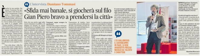 Una volta disse: «Alla Roma ho dato tanto e dalla Roma ho ricevuto tutto quello che ci può stare se allargo le braccia e rivolgo le mani verso il cielo». Poesia pura. Espressioni a effetto che usa anche oggi nella nuova missione in politica, da sindaco di Verona, in carica dall’elezione il 26 giugno 2022, e che ha lanciato con la proverbiale semplicità ieri mattina a Norcia dove, nell’ambito del Premio nazionale “Ilario Castagner”, ha ritirato il premio “Flavio Falzetti”, alla memoria di un ex centrocampista nursino scomparso l’11 marzo 2013 all’età di 41 anni a causa di una leucemia, dopo una lunga battaglia una quindicina d’anni contro un linfoma, e che aveva coinvolto Tommasi nelle iniziative per la raccolta fondi destinati alla ricerca e assistenza oncologica.