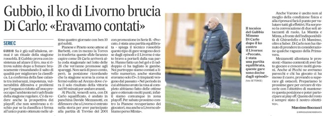 Pianese e Pineto sono attese al Barbetti, con in mezzo la Torres in trasferta, faranno capire come Di Carlo arriverà alla coda stagionale nel lotto delle 28 che verranno promosse agli spareggi. Non sarà di poco conto, però, la posizione ricordando che la stagione scorsa la corsa si fermò subito ad Arezzo dove c’era il solo risultato della vittoria nei 90 minuti per andare avanti. Al Picchi venerdì sera, perché Di Carlo era squalificato, è andato in panchina Davide Mezzanotti, ex difensore che a Livorno è entrato nella storia per aver partecipato alla storica partita di Treviso del 2001 con promozione in Serie B. «Peccato, è stata una partita equilibrata – spiega -, questo tipo di gare vengono decise dagli episodi e il Livorno è stato bravo a portarli dalla sua parte. Hanno fatto un bel gol e il raddoppio ci ha tagliato le gambe. Noi purtroppo siamo contati a livello numerico, anche stavolta eravamo solo 15». I rimpianti vengono dal passato: «Nel periodo in cui abbiamo avuto la rosa al completo abbiamo fatto delle ottime gare e ottenuto molti punti, infatti siamo comunque in zona play off. Per sabato prossimo contro la Pianese recuperiamo dei giocatori, ma anche a Livorno abbiamo perso Minta».