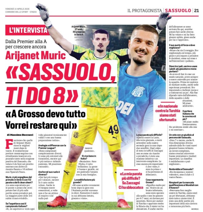 Facciamo che quelle di Arijanet Muric siano le migliori mani dopo le vostre. Il ventisettenne portiere montenegrino con cittadinanza kosovara sta pesando tanto nella stagione positiva del Sassuolo, che valuta il da farsi sul prestito oneroso con diritto di riscatto fissato a 10 milioni con l’Ipswich Town.