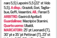 LECCE 1 PISA 0 LECCE (4-3-3): Falcone 6; Ndaba 5,5 (29’ st Gallo 6) Gaspar 6,5 Tiago Gabriel 6,5 Veiga 6;… Read more Il Messaggero nazionale 13 dicembre 2025