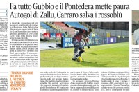 GUBBIO 1 PONTEDERA 1 Gubbio (3-4-1-2): Bagnolini 6; Bruscagin 5.5, Signorini 6, Di Bitonto 6; Zallu 4.5 (28’ st Niang… Read more Il Messaggero Umbria 6 ottobre 2025