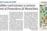 GUBBIO 1 PONTEDERA 1 GUBBIO (3-4-1-2): Bagnolini 6; Bruscagin 5,5 Signorini 6 Di Bitonto 6; Zallu 4,5 (28’ st Niang… Read more Corriere dello Sport-Stadio 6 ottobre 2025